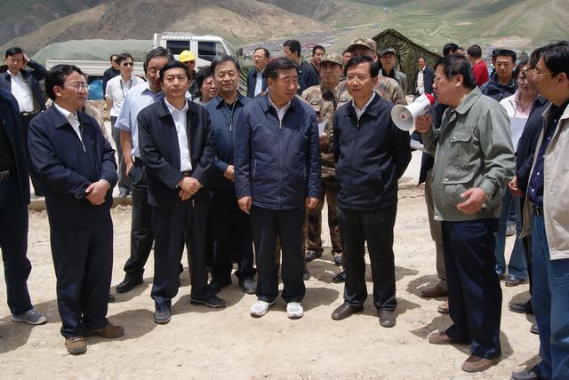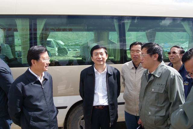 6月19日,中共中央政治局委員、國務(wù)院副總理、國務(wù)院抗震救災(zāi)總指揮部總指揮回良玉率領(lǐng)相關(guān)部委領(lǐng)導(dǎo),在青海省委書記強衛(wèi)、省長駱惠寧、副省長馬順青的陪同下,來到正在晝夜施工建設(shè)的青海物產(chǎn)玉樹建材物流集散中心,視察災(zāi)后重建物資儲備情況和集散中心工程建設(shè)情況。集團總經(jīng)理王玉輝向中央領(lǐng)導(dǎo)和省領(lǐng)導(dǎo)詳細(xì)匯報了建材物流集散中心建設(shè)規(guī)模和鋼材、水泥、木材三大類物資收儲情況。同時表示,青海省物產(chǎn)集團總公司將一如既往,全力以赴支援玉樹災(zāi)后重建,與各路建設(shè)大軍一道,為建設(shè)美好綠色新玉樹貢獻(xiàn)力量。聽完匯報,回良玉副總理非常高興,并做出重要指示,要做好統(tǒng)籌組織建材物資的采購和調(diào)運工作,努力保障供應(yīng),確保質(zhì)量,降低成本?;亓加窀笨偫砑笆☆I(lǐng)導(dǎo)與集團領(lǐng)導(dǎo)、工作人員合影留念。